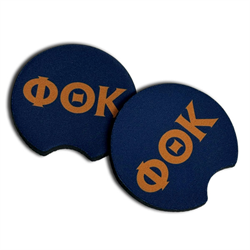 The absorbent car coasters are perfect for your car or truck’s cup holders. The coasters feature the Greek letters in gold on a navy background and are sold as a set of two.