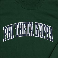 Cotton Heritage long sleeve forest green t-shirt featuring Phi Theta Kappa in a two-toned navy blue and white design.