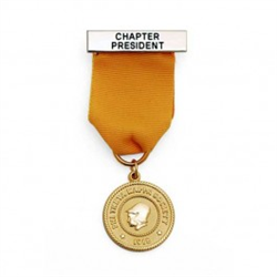 The Regional President Pin is suspended from a gold and white grosgrain ribbon and bar identifying the office.